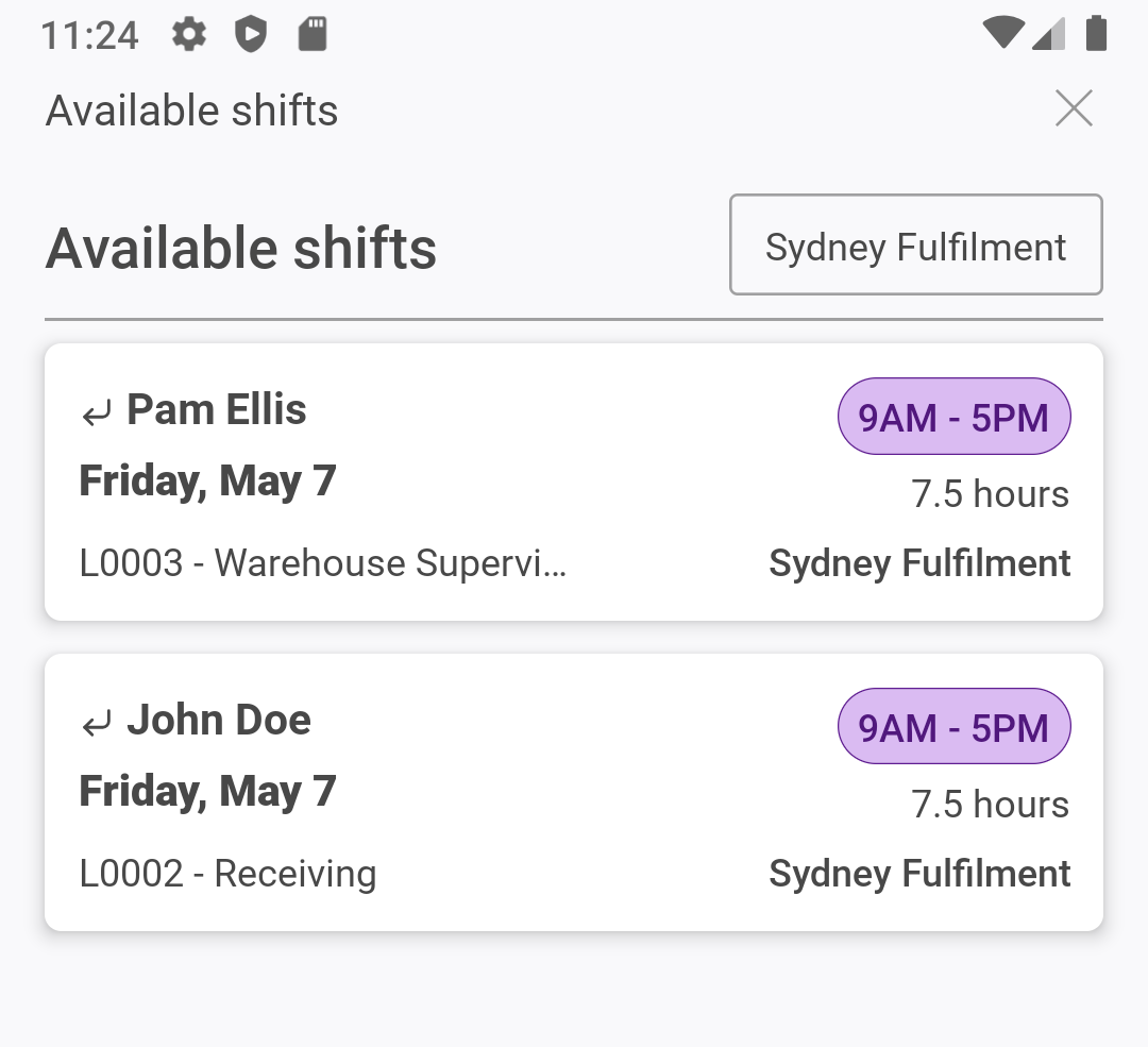 You can view all shifts for a location if your company has enabled this. Tap on the filter at the upper right then select a location. All the shifts for that location will be displayed.