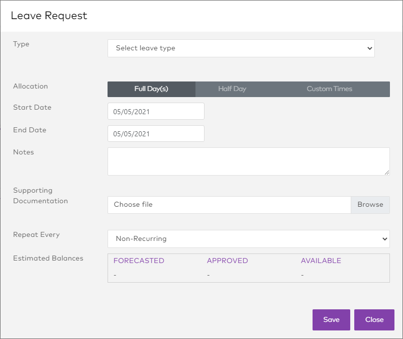 This balance is an estimate, based on the shift pattern entered for full time and part time employees.