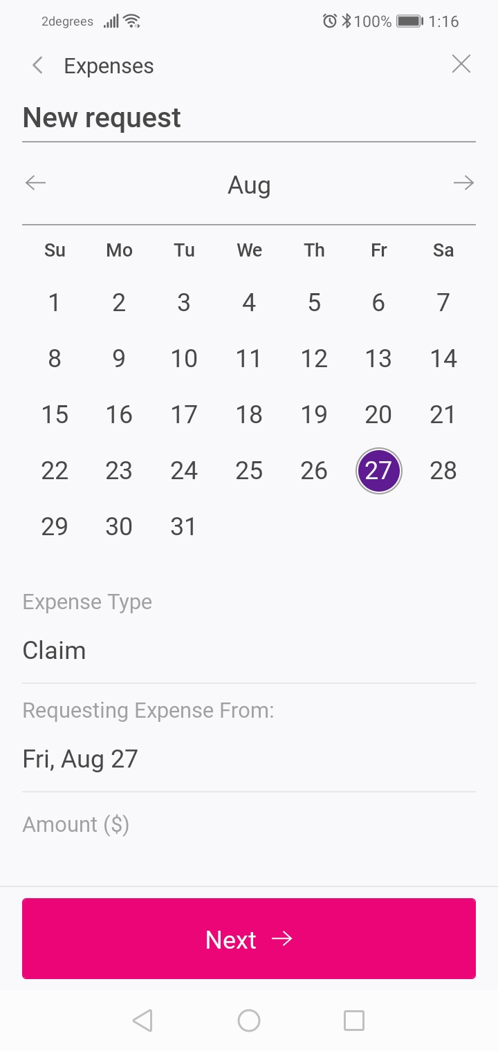Requesting Expense From: Select a date from the calendar for when the expense occurred.
