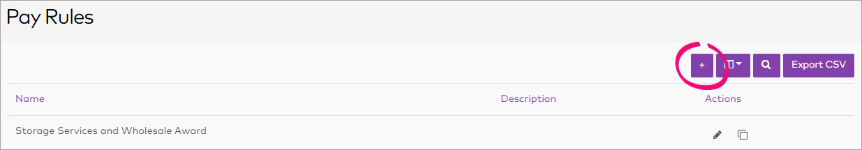 On the Pay Rules screen, click the plus icon to create a new pay rule.