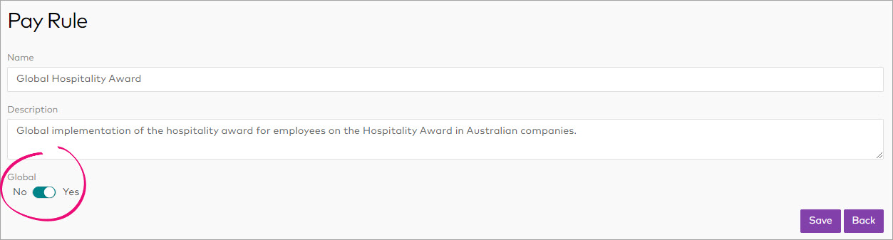To create a global pay rule