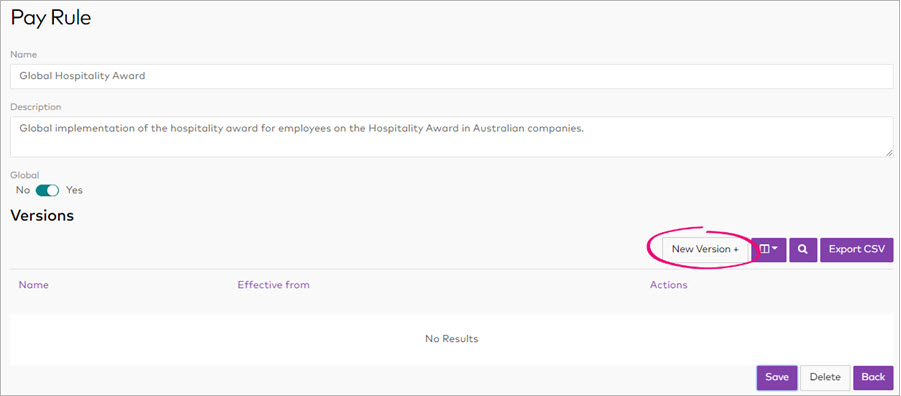 To create a new global pay rule version