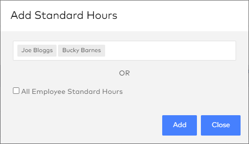 Enter the employees you want to add standard hours for, or tick All Employee Standard Hours, then click Add.