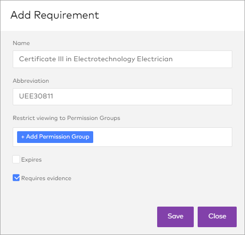 This step will only show for the selected employee groups, so you can create multiple steps to gather only the information required. For example, you may need a separate requirements steps for each position.