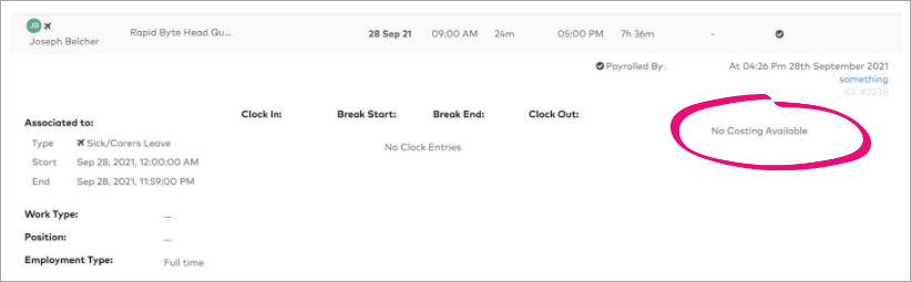 If leave isn't coming through, check the leave in MYOB Acumatica — Workforce Management. If the leave pay item shows No Costing Available and no time, you need to make sure your pay conditions, leave mappings, and employees are set up correctly.