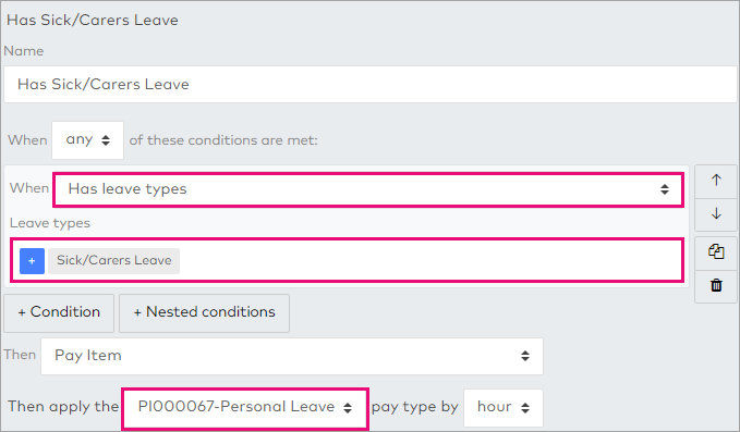 Make sure you have a Setting up pay conditions that uses the Has leave types condition to link the leave type to a pay item.