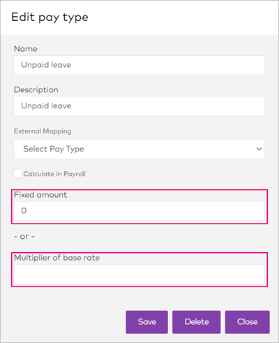 - Go to Settings > Pay Types and edit the pay type causing the problem (e.g. unpaid leave).