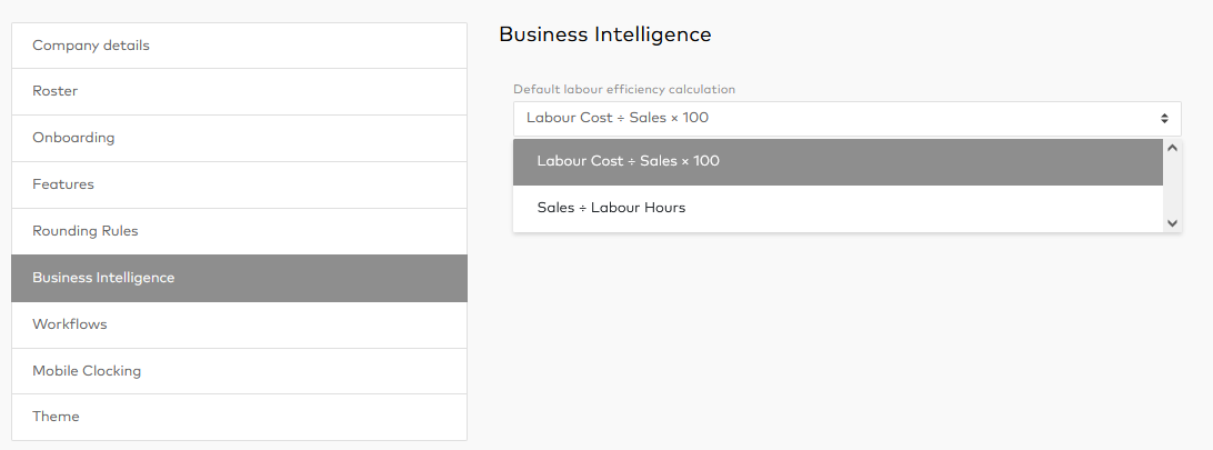 This is where you can define how you would like your labour efficiency to be calculated. This is displayed in the business intelligence feature in the "efficiency" graph.