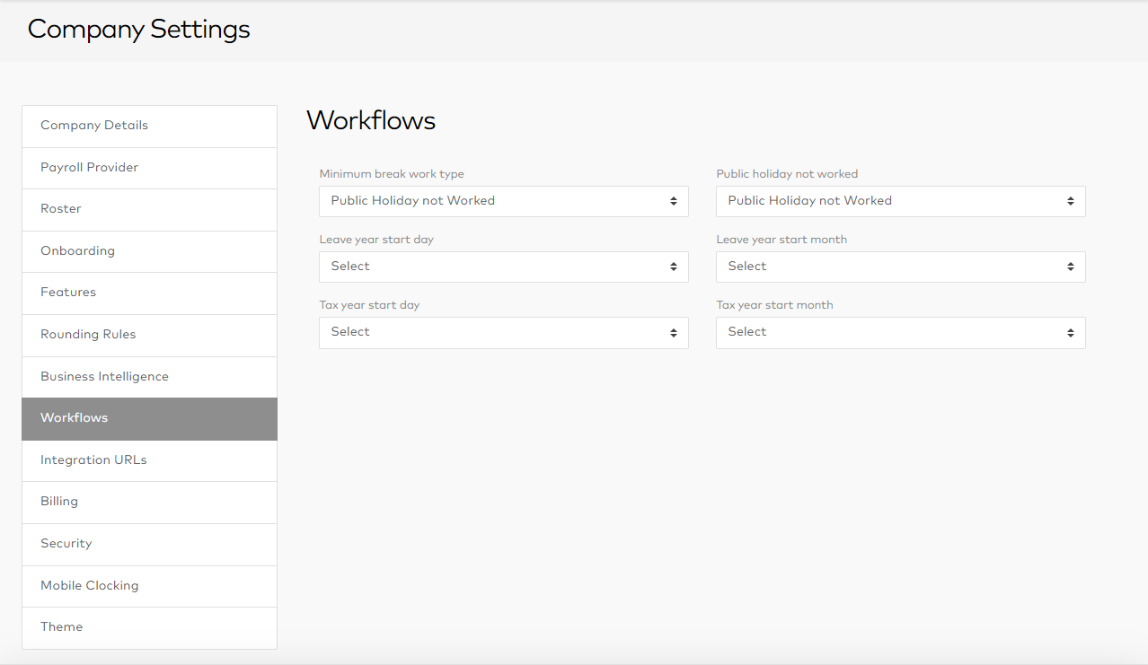 Week starts | Week start should match to the company’s rostering, usually matches to their payroll cycle.
