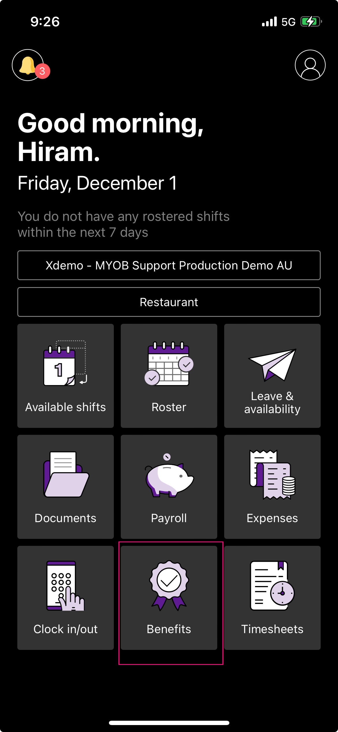 Filling out the Employee benefits URL adds a tile to the Mobile App: