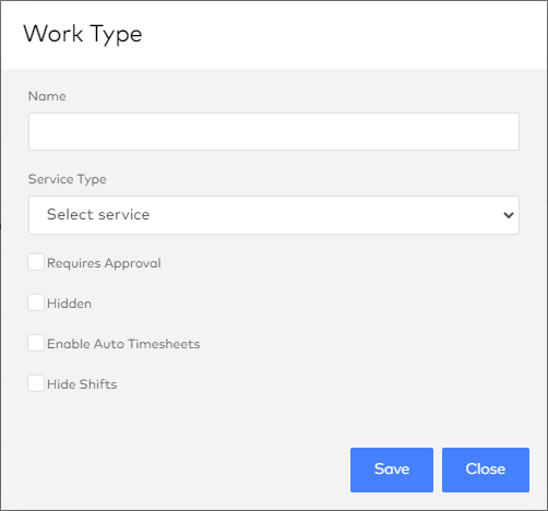 As a manager, you can add work types by going to the Settings section and then go to Work Type Settings page.