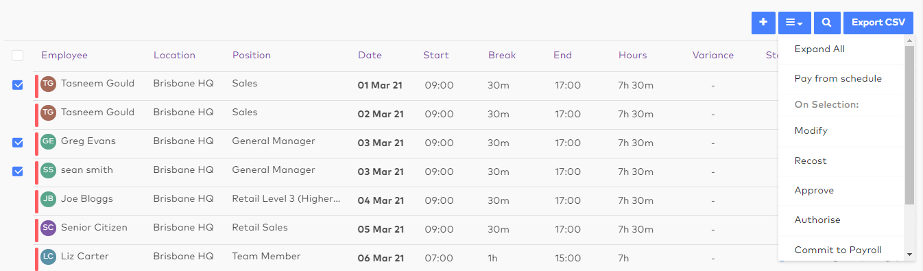 You can also do a bulk recost by checking all the checkboxes on the left of the required timesheets then clicking the Recost action.