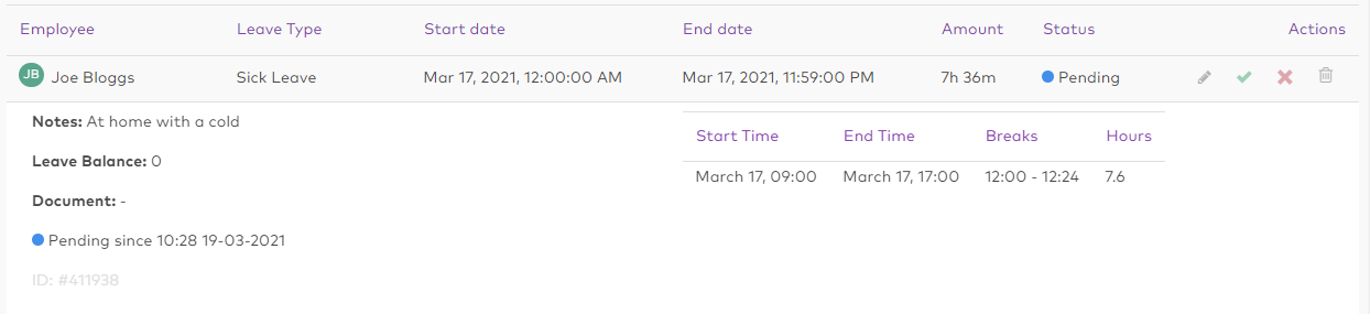 As a manager, you will have access to the Manage Leave screen. This is where you will manage all employee leave requests.