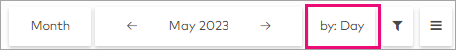 Click the by: button to categorise the timesheets into expandable groups by Day, Location, Employee, Position or Status.