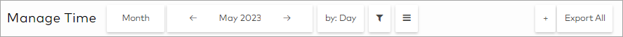 Use the first two buttons to choose the duration and dates shown on the Manage Time screen.