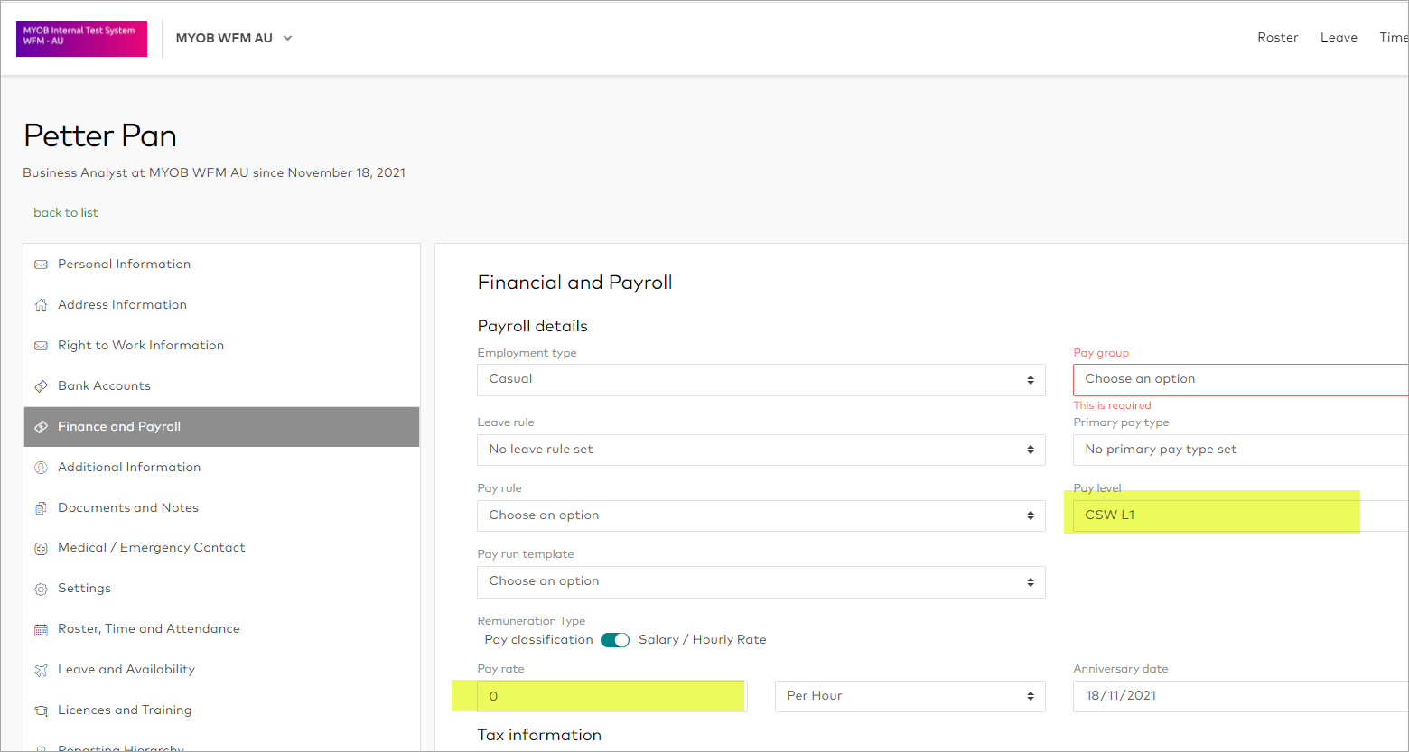 In MYOB Advanced with WorkForce Management (WFM), you may not be able to onboard casuals under the pay rates instead of pay levels.