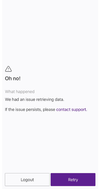 An "Oh no!" error on the MYOB Advanced Teams mobile app.