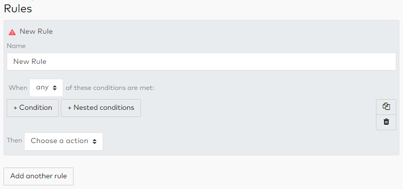 A rule can have more than one condition, and you can choose an operator to apply to the conditions. If the conditions are met, the selected action will be applied.