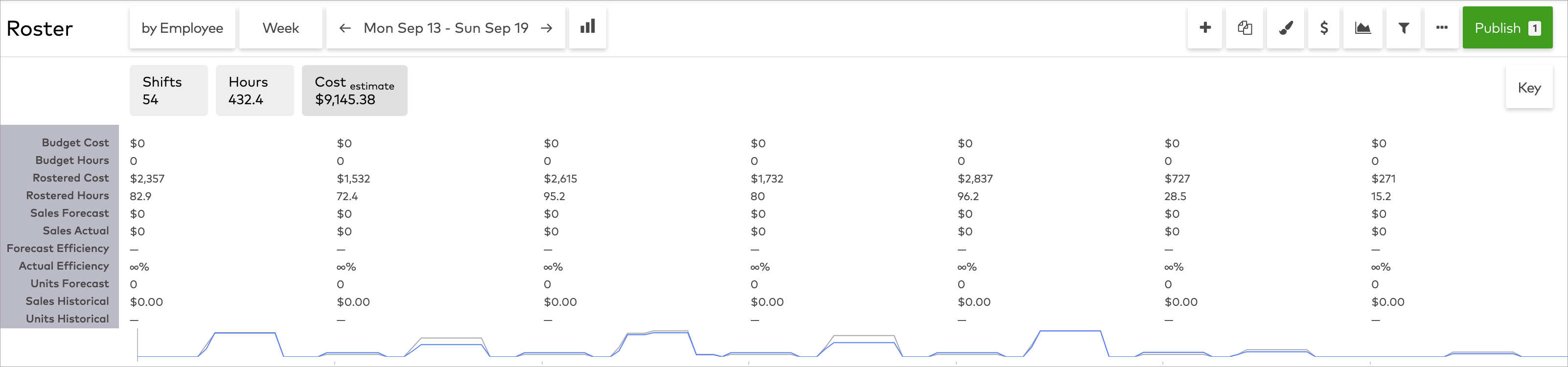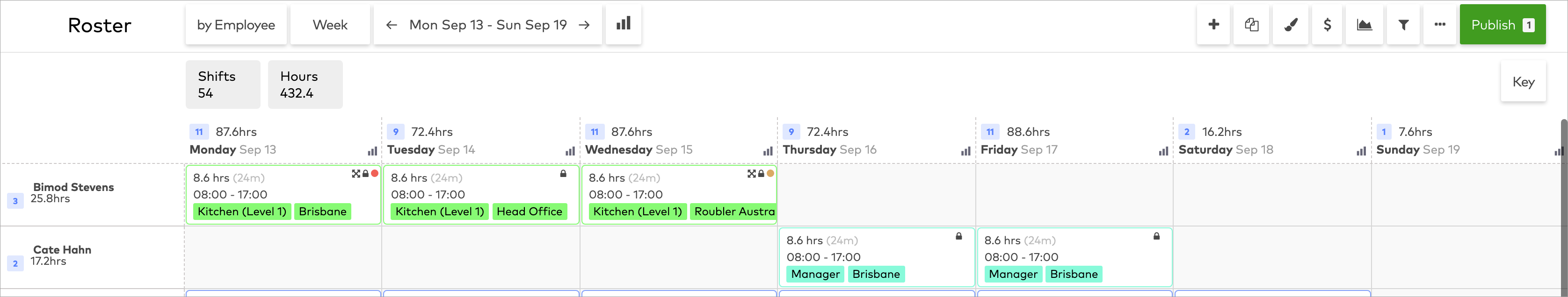 The roster has a sleek new look that helps managers visualise performance and make more informed decisions. All of the roster's essential functions are the same, but items are now grouped in a more logical way. These changes make the roster is easier to navigate, quicker to edit, more responsive and more accessible.