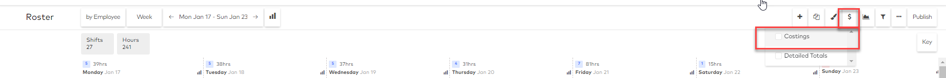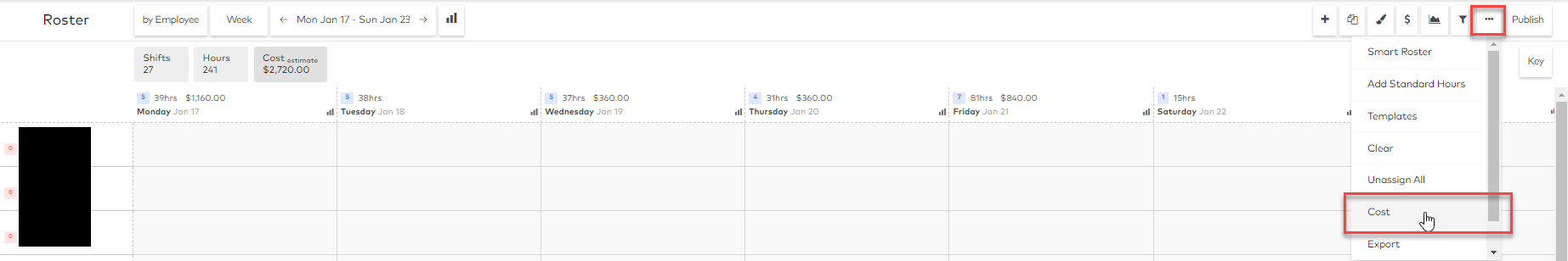 Check that the Shifts have been COSTED using the ... "Cost" option, see below screenshot: