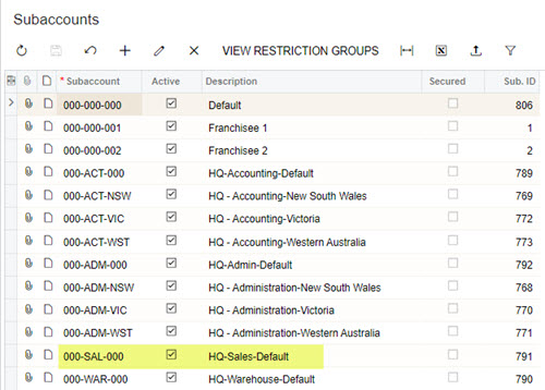- Name: The sub account description ie HR-Sales-Default