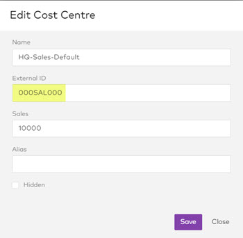 - Alias: An alternate name for the cost centre (optional)