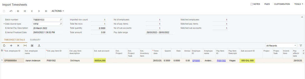 Demonstration of Cost Centre to Sub Account mapping functionality between Workforce Management and Advanced Payroll.