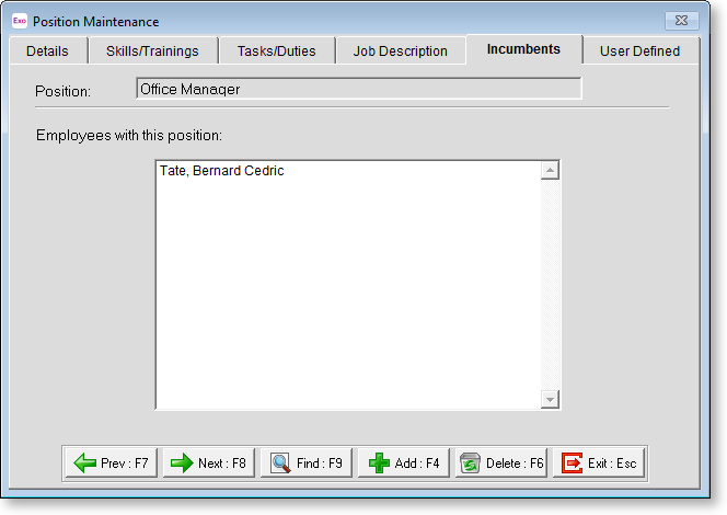 Employees with this position A list of the incumbents is displayed once the position has been assigned to one or more employees.