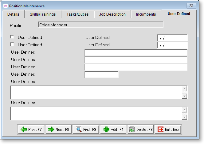With User Defined Fields you can extend the power of the Exo Employee Information system to record items of interest that are not otherwise covered elsewhere.