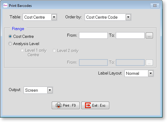 Cost Centre/Employee Barcode Printing