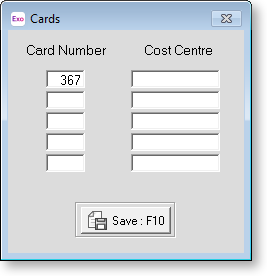 Once you have entered all card numbers, click Save or press F10 to return to the Employees window.