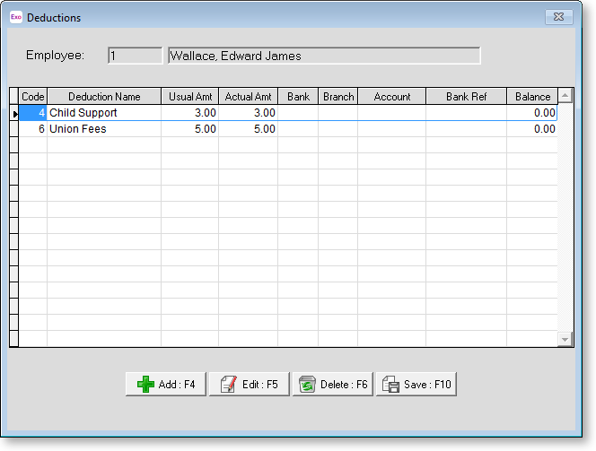 Only deductions with a value or amount will print out on the employee's Payslip. You can edit deductions by clicking the Deductions button on the Current Pay window if needed, but this is not normally done, as deductions tend to be fairly static. In most cases the defaults set up in the Standard Pay will not need to be altered.