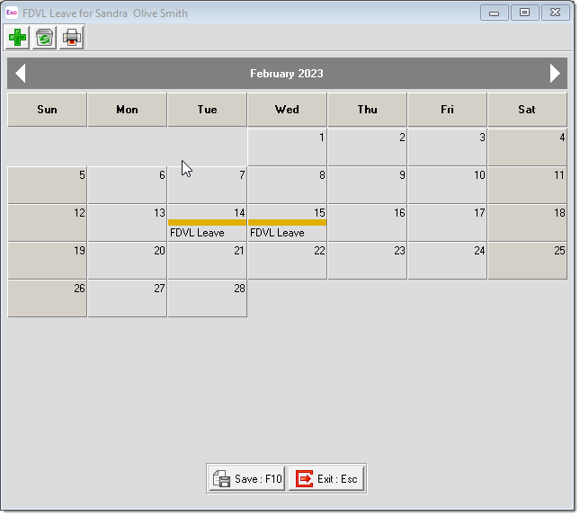 Click the FDVL Leave button on the Leave Management window to pay an employee Sick Leave.
