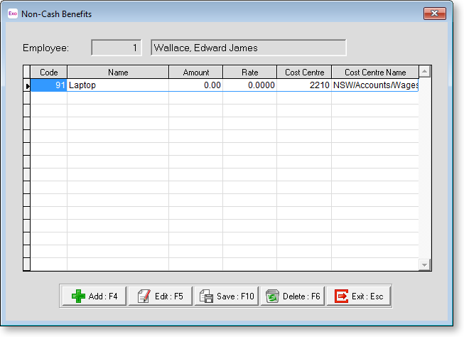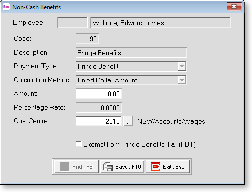 Clicking the Non-Cash Benefits button on the Current Pay window opens this window.