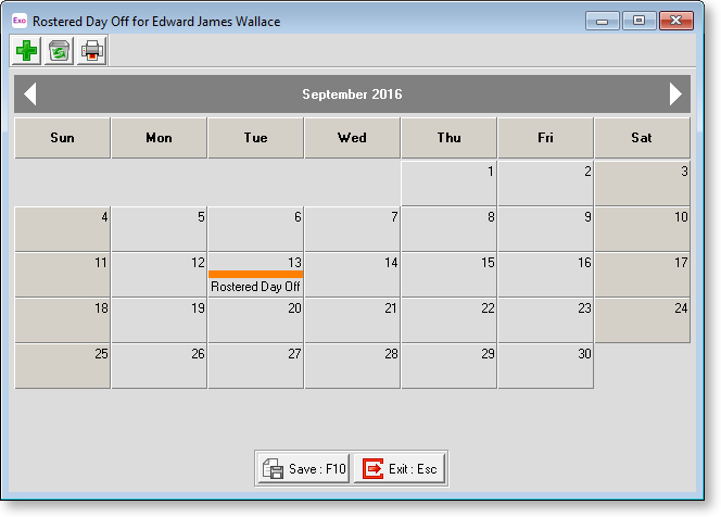 Click the RDO button on the Leave Management window to pay any Rostered Days Off that the employee has accrued.