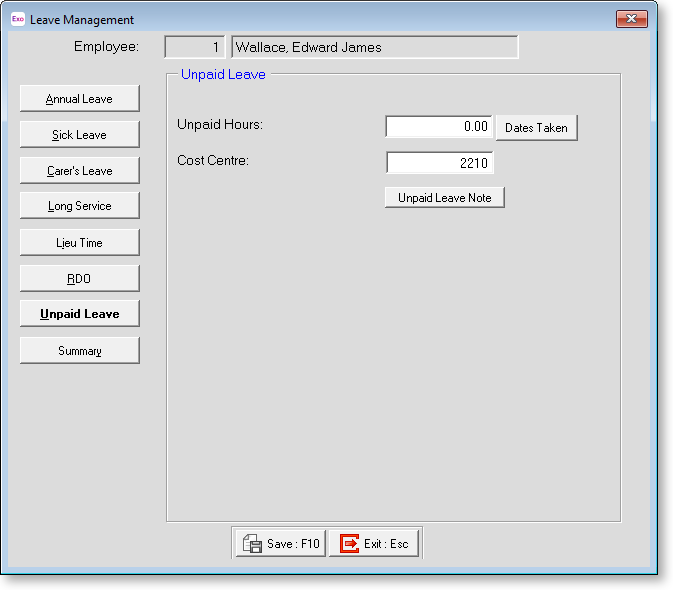 Cost Centre Although leave is automatically costed to the employee's default cost centre, this field allows you to cost the unpaid leave value to a different cost centre.