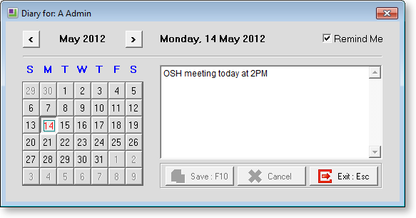The Diary is a small utility that allows a user to add notes to a specific date. These notes can be records of past events or reminders for future dates.