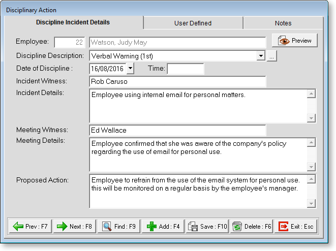 Although it is the hope of all organizations that the need to discipline staff is rare if at all, it is important that if the occasion arises that the organisation records the information correctly.