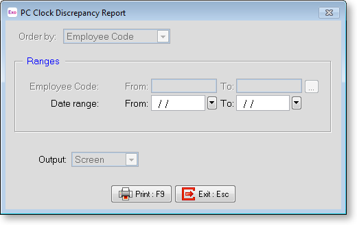 The report screen itself is very similar to the Clockings Report, however it has a few less features available (such as no "Order by" options) as they are not needed for this report.