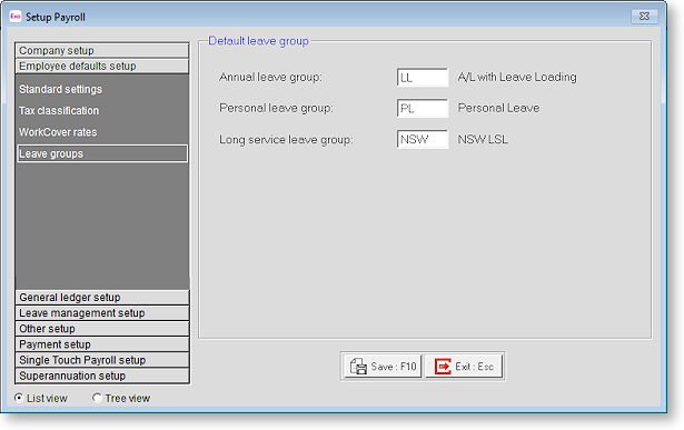 Superannuation Select the default superannuation contribution that should automatically be added to new employees. If you do not know the appropriate code, click the button for a list of the available codes.