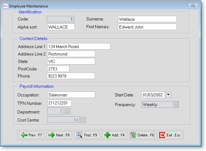 Select Employees from the File menu to open the main window to view employee details.