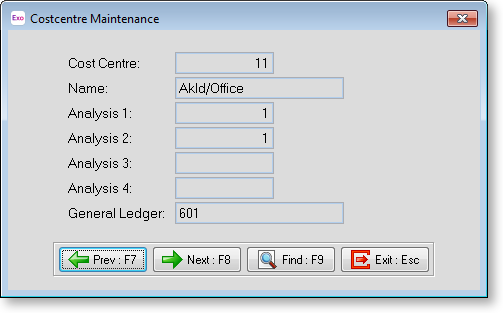 Cost Centre This is the unique code for this Cost Centre.