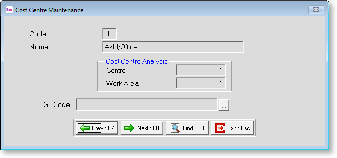 From the Maintenance menu, select Cost Centres, then select a Cost Centre from the list that appears.