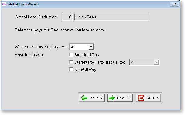 Global loading gives you the ability to transact a deduction for several employees at once, at any time - even after the pay has been created and the Standard Pay information has been copied to the Current Pay.