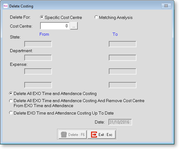 Delete All Exo Time and Attendance Costing for a Specific Cost Centre