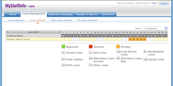 - Pending Requests - Show only leave requests which are awaiting an Approve/Decline response from the manager.