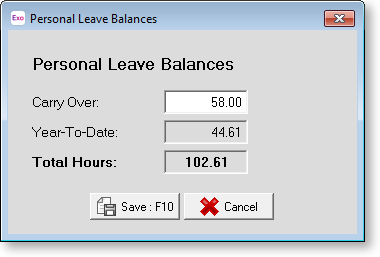 Total Hours This is the total hours the employee is entitled to. When transferring balances from your previous payroll system, you will most likely need to adjust the Total Hours. Do this by entering a positive value to increase or a negative value to decrease it in the Carry Over field.