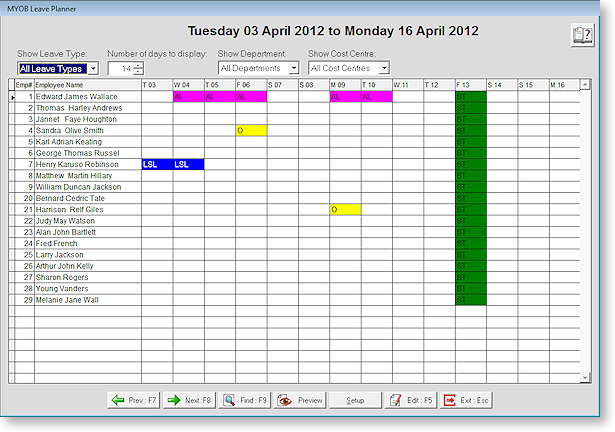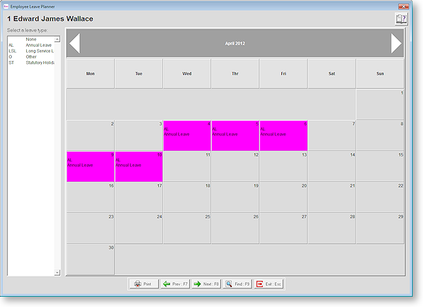 The Leave Planner makes it easier for pay clerks to judge their staffing levels and to plan in advance when employees may take annual leave, long service leave or statutory holidays.