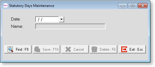 To add a new statutory holiday and date, enter the date, then a description of the day. Click Save or press F10 to save the new day.