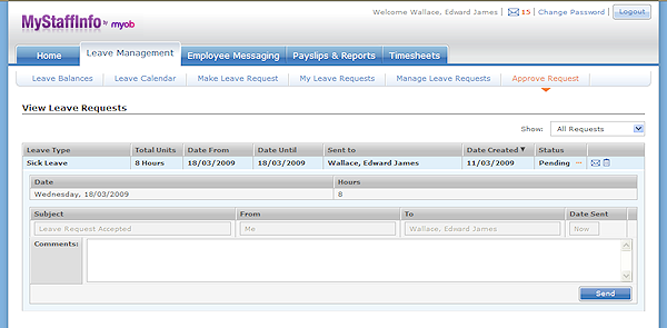 When a leave request is approved, you are required to send a message confirming your response. Optionally, you may elect to add a comment.